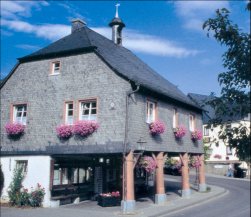 bereits im frühen Mittelalter zentraler Marktflecken, Kirchenspielort und Gerichtssitz unter dem Schutz der Wild - und Rheingrafen und dem Kurfürst-Erzbischof Balduin von Trier, für nicht weniger als 17 Dörfer der Umgebung. Nach dem Aussterben der für Rhaunen maßgeblichen Dhaun´schen Limie der Wild- und Rheingrafen fiel ein Großteil ihrer Rechte an die Rheingrafen Salm-Salm. An sie erinnert das historische Salm-Salm-Haus in der Ortsmitte, dem heutigen Gasthaus zum Löwen.