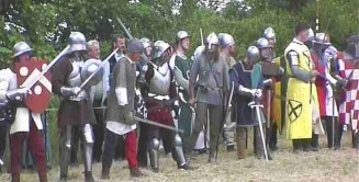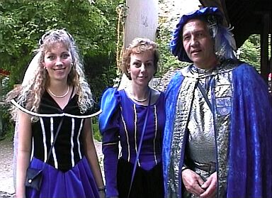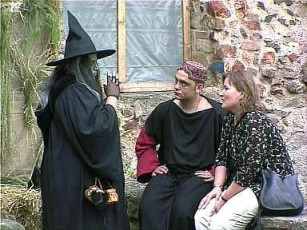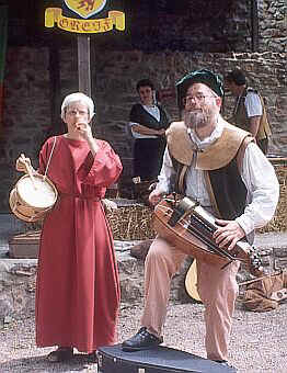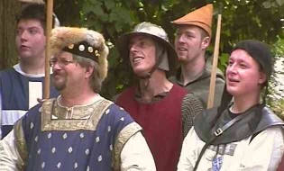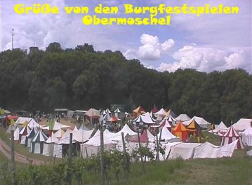 | Die Kleider, Hüte, Schuhe, Waffen, Trinkhörner, Stöcke und Schmuckstücke sind in den üblichen Kaufhäusern kaum zu erhalten - nur über Postversand und hier, zum Anfassen, in den Buden des mittelalterlichen Marktes. Im ersten Schwung geht man vielleicht in einer Stunde quer durch den mittelalterlichen Obermoscheler Markt - aber wenn man dann Zeit hat, seinen Flammkuchen isst und den Met trinkt, kommen sie erst richtig zum Vorschein, die zahllosen Einzelheiten, Feinheiten und Reize, die all die Fans des mittelalterlichen Treibens auf Markt, Kleidern und Bauten nähen, hämmern und häufen. Freundinnen von Rudolf Steiner, Heavy Metal Fans, Asterix-Comic-Leser, Gothic People, Selbstversorger, Modebewußte und auch der Webmaster dieser Seiten, Chris Mennel kommen auf ihre Kosten. Nanu? Da trägt doch einer einer Brille? Tatsächlich locken die Obermoscheler Burgfestspiele viele an, denen durch Natur und Vererbung der passende Charakter und Gesicht gleich mitgegeben ist.Tatsächlich locken die Obermoscheler Burgfestspiele viele an, denen durch Natur und Vererbung der passende Charakter und Gesicht gleich mitgegeben ist.