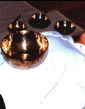 Klangschalen eine sanfte Massage, die Klänge strömen durch den Körper und