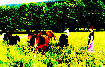 argerecht gehaltenen Welsh-Ponys und Schwarzwälder Füchsen.