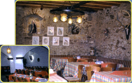 Egal ob sie nur etwas essen wollen, mit ihrem Club, dem Verein oder der Gesellschaft vor dem Kamin plaudern oder eine größere Veranstaltung planen, hat das Restaurant genau das richtige Ambiente. Restaurant, rustikaler Saal (120 Personen) und uriger Rittersaal (60 Personen). In diesen alten Mauern werden typische Hunsrücker Gerichte serviert. Der beliebteste von allen ist und bleibt der herzhafte Spießbraten. Auf Vorbestellung wird diese typische Hunsrücker Leibspeise frisch vom Rost serviert. Heimische Fleischgerichte regieren ein wenig die umfangreiche Speisekarte. Aber auch vegetarische Gaumenfreunde werden satt. Nette Idee: Halbe