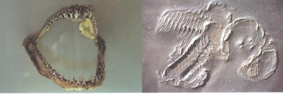 zeigt das authentische Gebiss enes Haies, dessen Revier